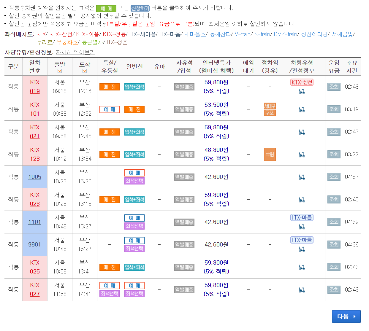 3. 금액과 시간 열차까지 한꺼번에 검색이 가능합니다. 인터넷 특가도 확인할 수 있으니 예매를 서둘러야겠지요?