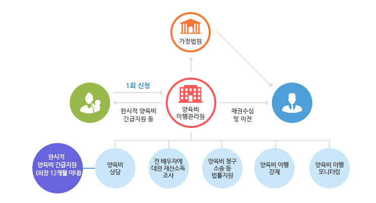 | 이행명령 신청 | 확정 판결 등 집행권원 있음에도 미지급 시 신청 | 판결문, 조정조서, 증명서 등 | 과태료, 감치 등 강제조치 가능 |