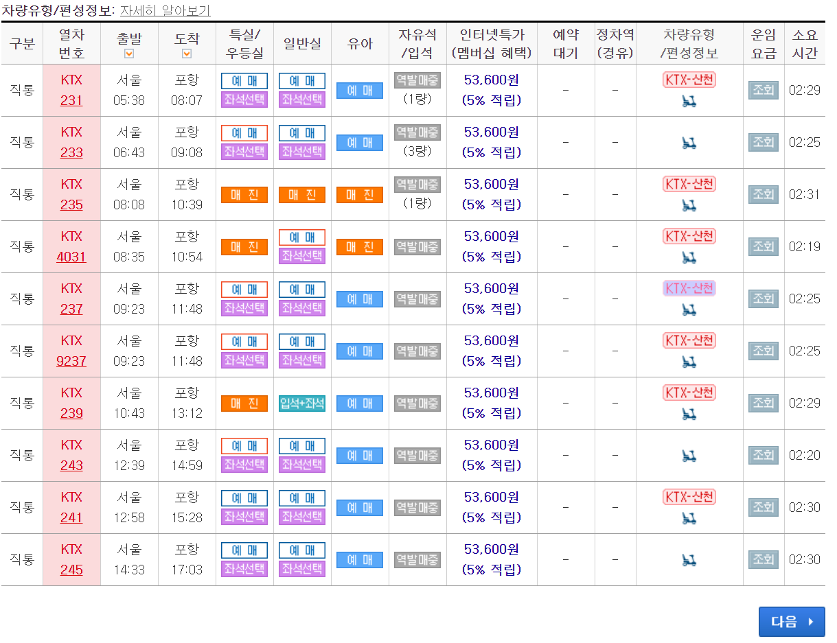 포항역 ktx 시간표 확인 및 예약하기